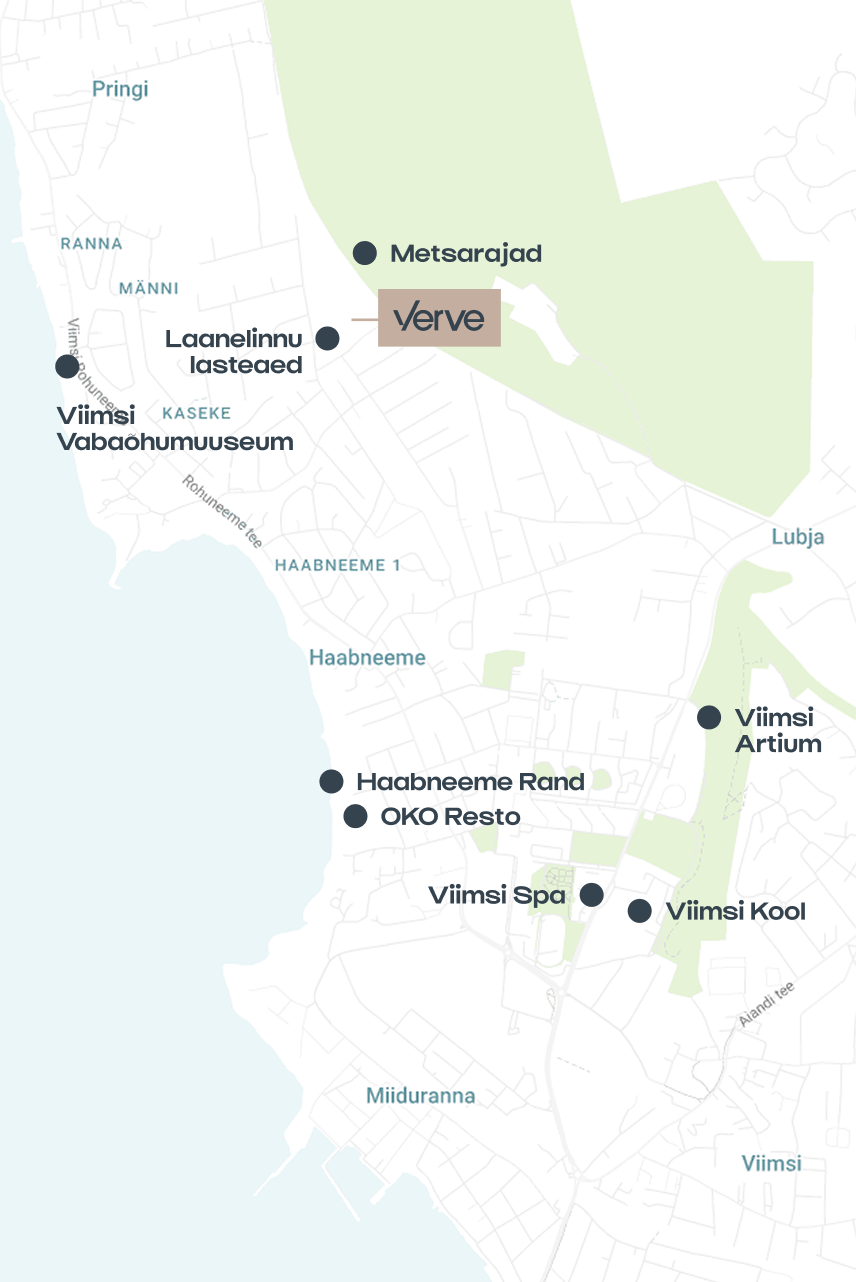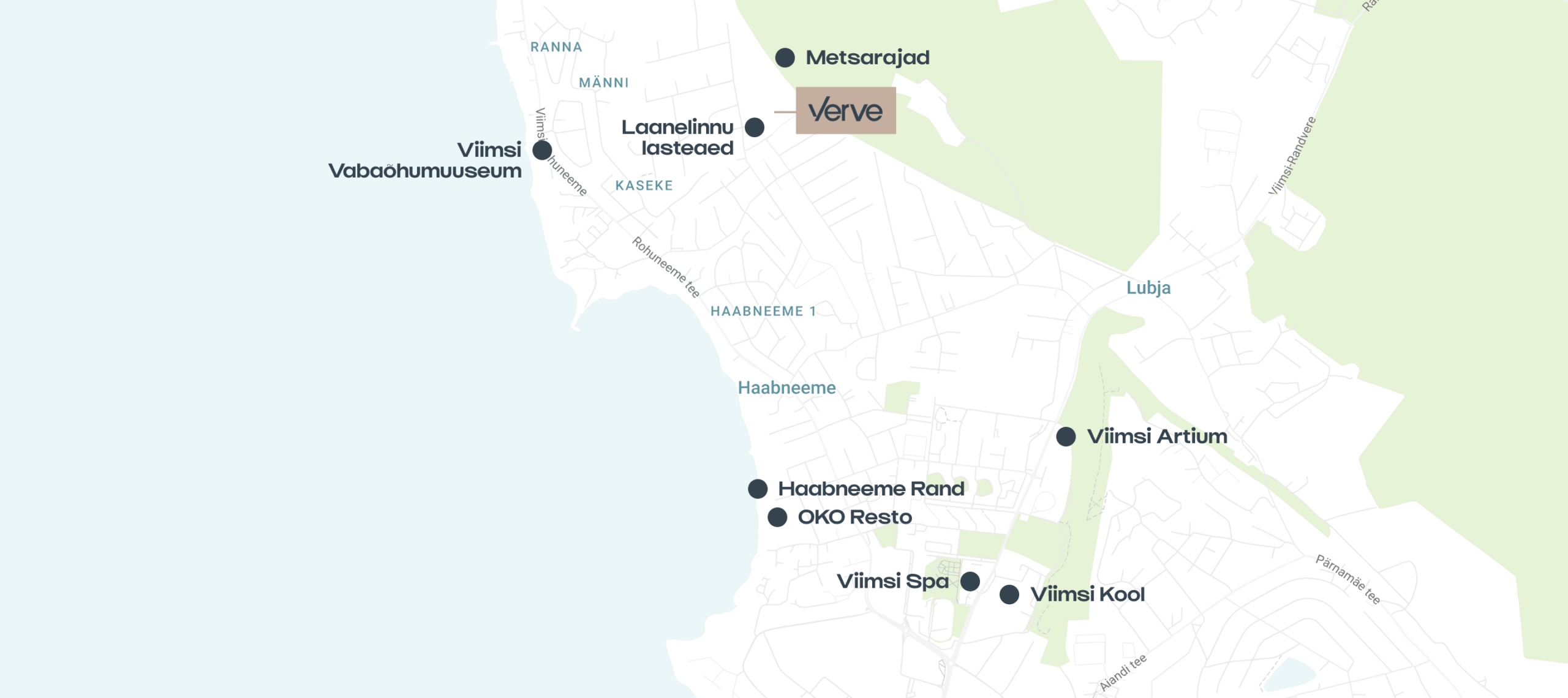 Verve kodud asuvad kõrghaljastusega Viimsi ürgmetsas, kus loodus kujundab kogu elukeskkonna. Arhitektuur on loodusega kooskõlas – hooned on paigutatud ja liigentatud nii, et säiliksid olemasolev metsa, suured puud ja looduslik reljeef ning et igale kodule tekiks privaatne, rahulik ja rohelusega ümbritsetud eluruum.